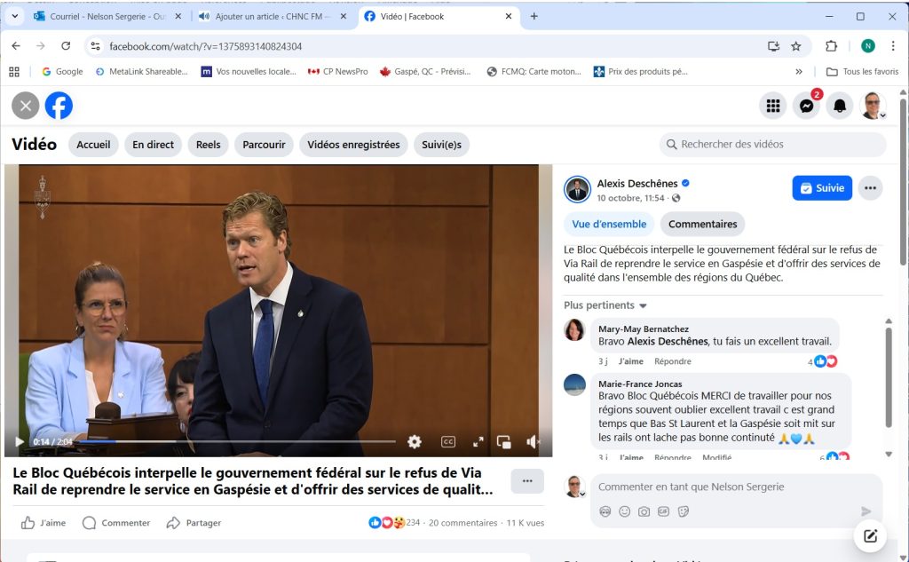 Le député bloquiste de Gaspésie-Les Îles-de-la-Madeleine-Listuguj a sensibilisé le nouveau ministre des Transports sur le retour de Via rail en Gaspésie sans obtenir d’engagement. Alexis Deschênes a discuté avec Steven MacKinnon et sent une écoute. Le député a aussi échangé avec de Via qui répète être à la table à dessin depuis le report de […]